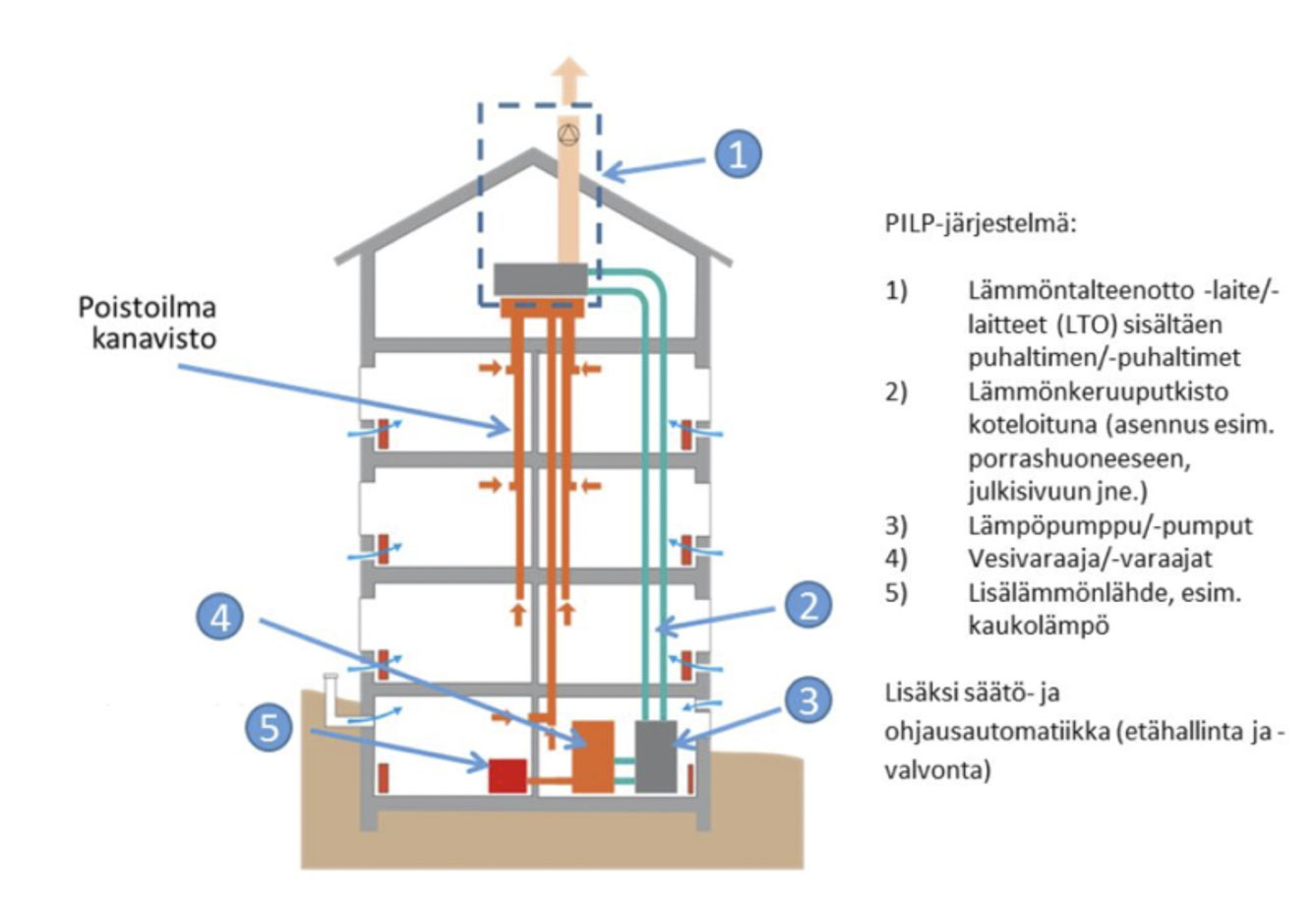 PILP on lämpöpumppu, joka ottaa koneellisen poistoilmanvaihdon mukana kulkeutuvasta lämpöenergiasta lämpöä talteen ja siirtää lämmön sen hetkisen tarpeen mukaan lämpimään käyttöveteen ja lämmitysjärjestelmään.