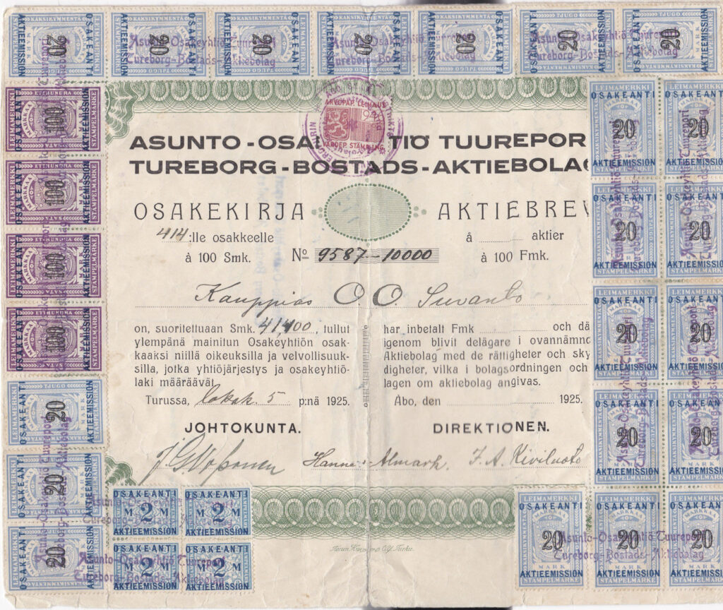 As Oy Tuureporin osakekirjat painettiin