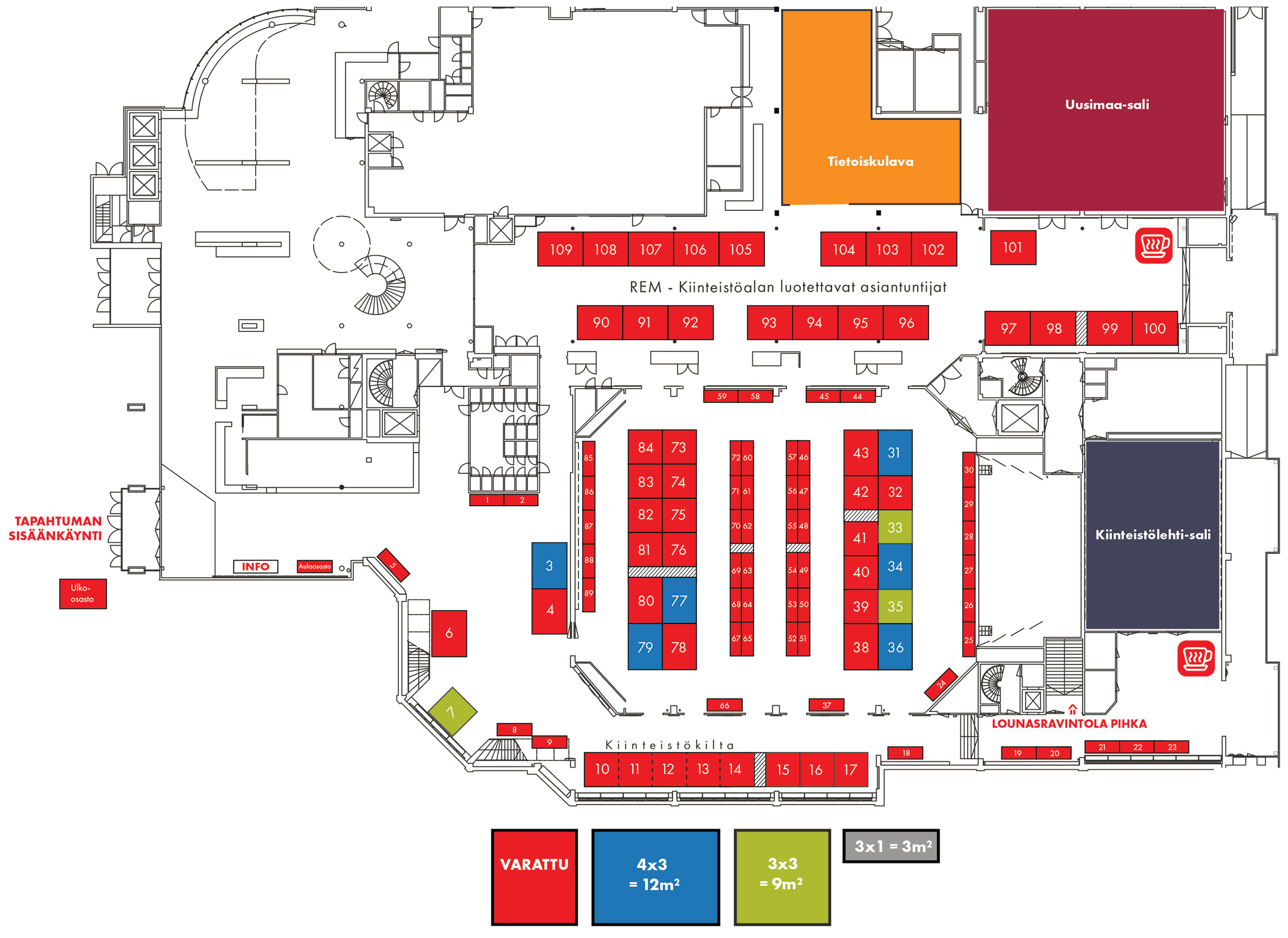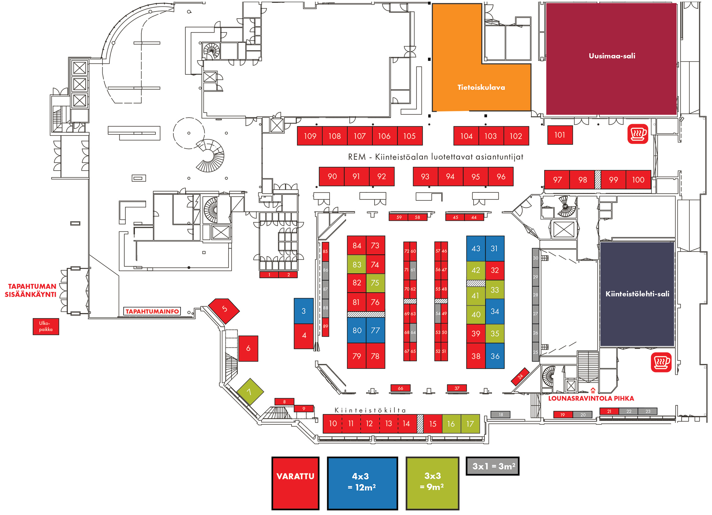 Kartasta löydät näytteilleasettajien paikat numeroittain.